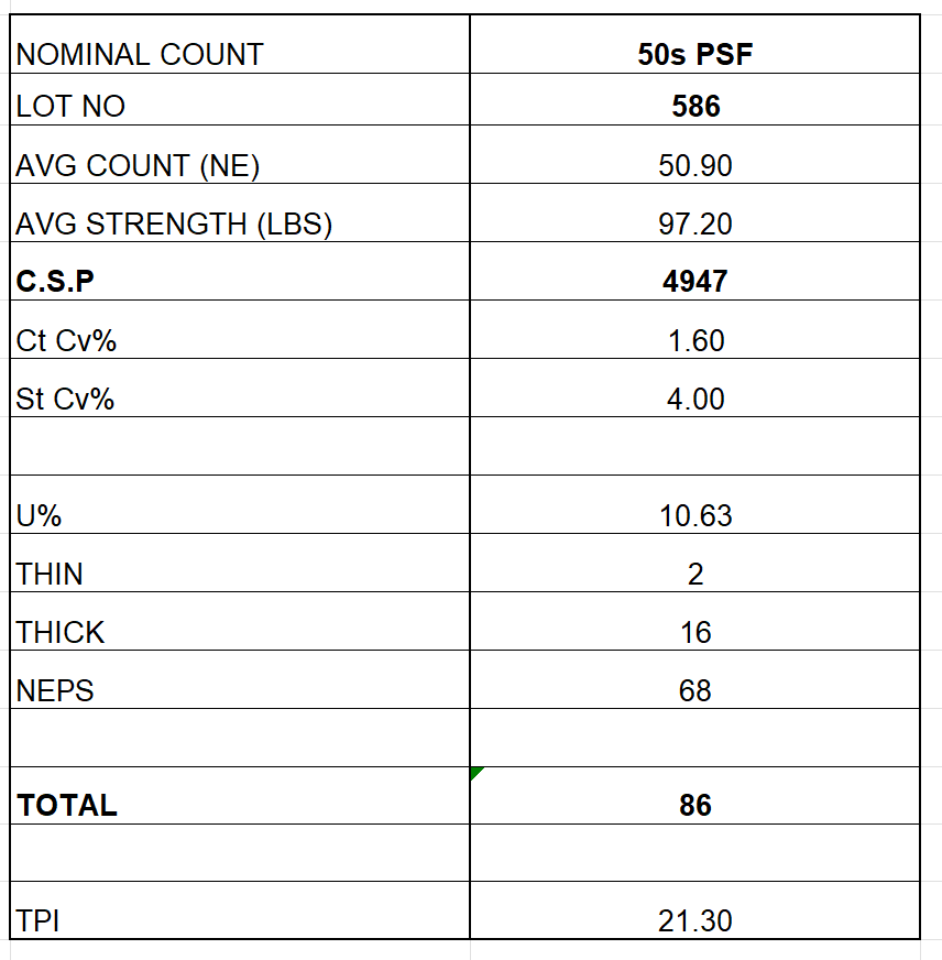 Yarn Count – 50s Ne