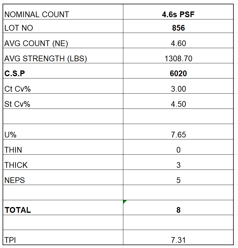 Yarn Count – 4.6s Ne
